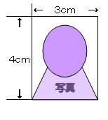 - たて4cm×よこ3cm、上半身、脱帽。