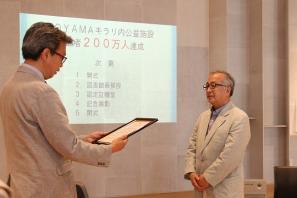 [2]記念式典では、200万人目の来館者の方へ、認定証と記念品が贈呈されました。今後も、TOYAMAキラリが市内外の多くのお客様に親しまれる施設となるよう努めていきます。