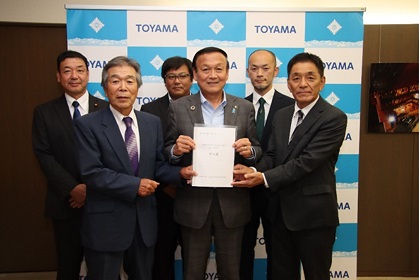 IMF株式会社と株式会社IPS、株式会社ミタホームより、富山市福祉奨学基金への寄附をいただいたことを受け、藤井市長が感謝の意を表しました。