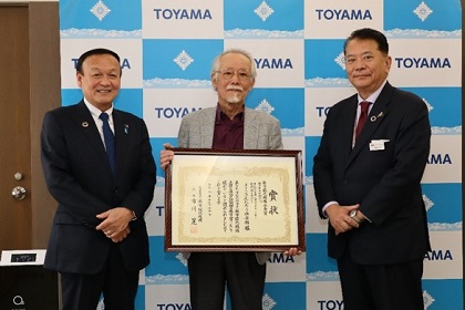 第44回緑の都市賞・緑の市民協働部門において、都市緑化機構会長賞を受賞したNPO法人きんたろう俱楽部の山本茂行副理事長が、その報告のため藤井市長を表敬訪問されました。受賞したのは、NPO法人きんたろう俱楽部と行政や近隣の地域団体が協働して行っている「呉羽悠久の森と里山のあわいを繋ぐ持続可能な森づくり」です。